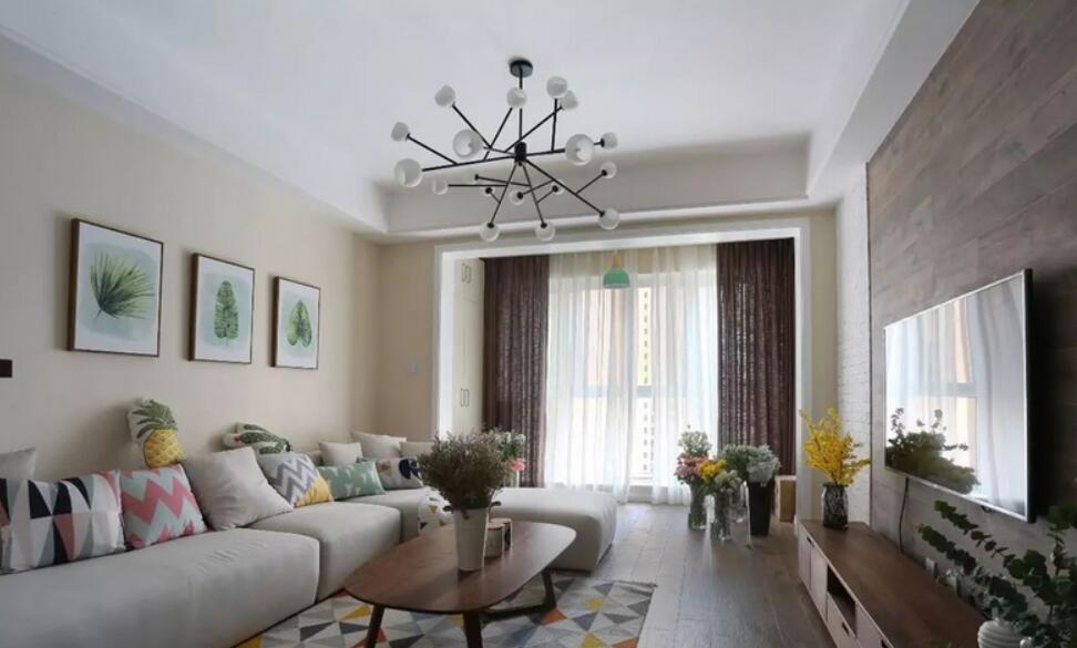沙发墙挂上几幅清新的装饰画,搭配几个温馨可爱的抱枕,整个空间都显得精致温馨;