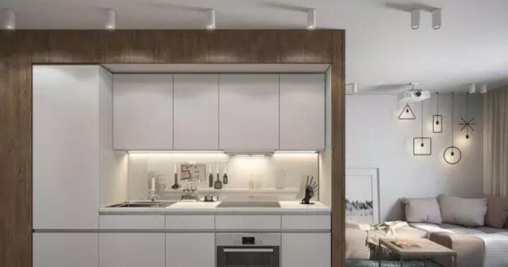 聪明的空间风格,使不同的生活空间,厨房,卧室没有妥协开放的感觉。从厨房到入口通道的走廊:一侧使用木材,另一侧是白色的橱柜,表示两侧不同的功能空间。