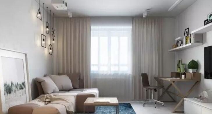 自然焦点在中间内部,唯一彩色抢眼是钴蓝色地毯和一些赤土色的色块。